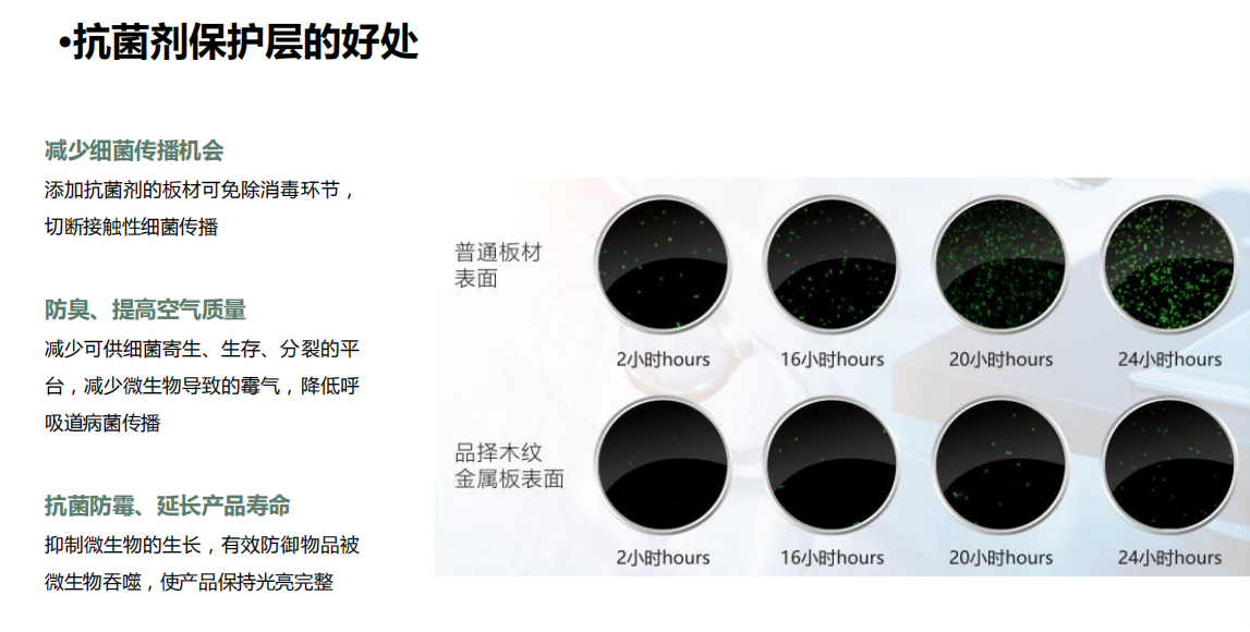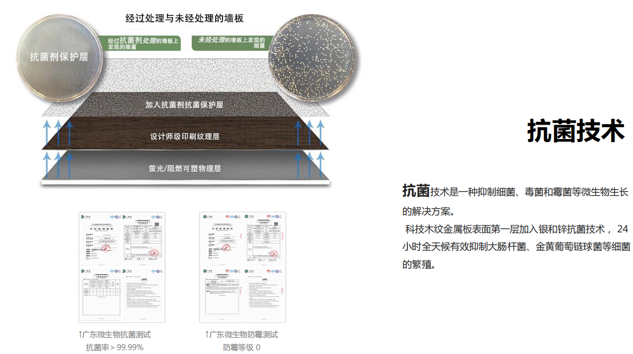 抗菌覆膜金屬復(fù)合板是采用抗菌技術(shù)在覆膜金屬復(fù)合板的表面添加抗菌劑形成抗菌保護(hù)層達(dá)到抗菌效果。